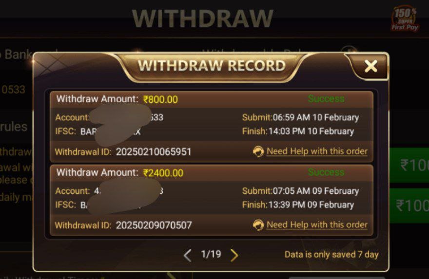आप अपना बैंक अकाउंट चेक करके देख सकते हैं कि रकम आई है या नहीं। अगर आपकी रकम नहीं आती है, तो आप कस्टमर केयर ऑप्शन पर क्लिक करके और मैसेज भेजकर कस्टमर केयर से संपर्क कर सकते हैं। आप वहां अपनी समस्या बता सकते हैं, कि आपका विड्रॉल अभी तक प्रोसेस नहीं हुआ है। इस तरह, आप इस एप्लीकेशन के ज़रिए घर बैठे पैसे कमा सकते हैं और अपनी जीती हुई रकम आसानी से अपने बैंक अकाउंट में ट्रांसफर कर सकते हैं।