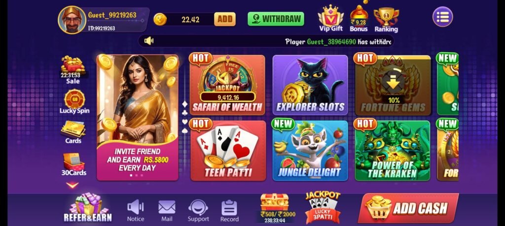 - गेम खेलें: ज्यादातर बोनस राशि को सीधे निकाला नहीं जा सकता। आपको उस पैसे से गेम (जैसे Ludo, Dragon vs Tiger, या Rummy) खेलना होता है।